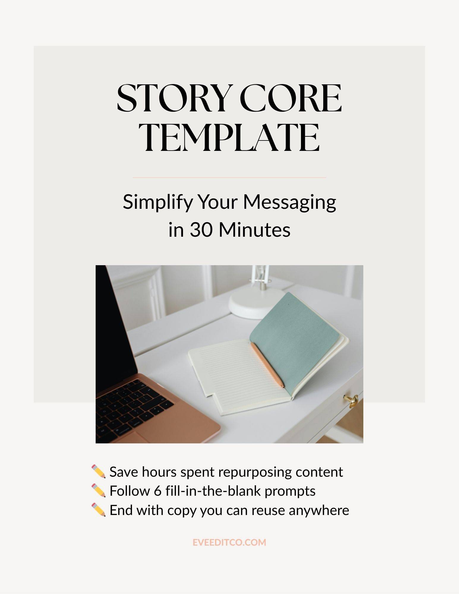 The Eve Edit Co. Key Story Core Template offers clear direction on how to include facts, data, and human context in your key messaging.